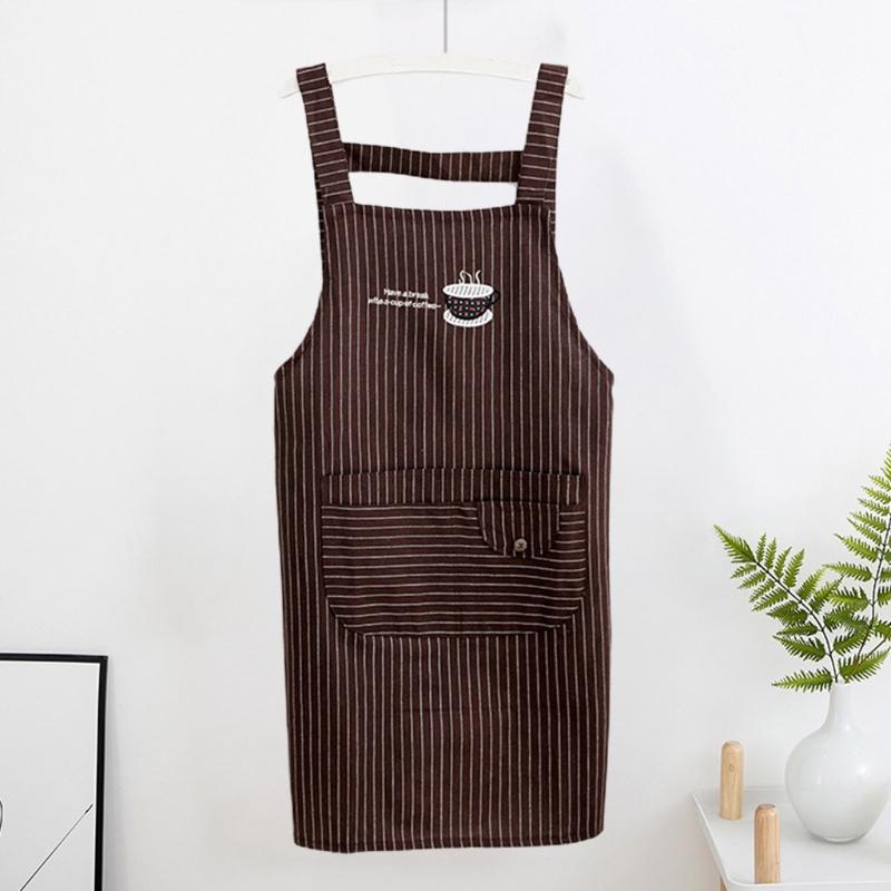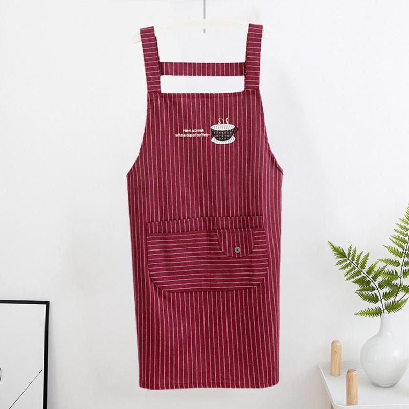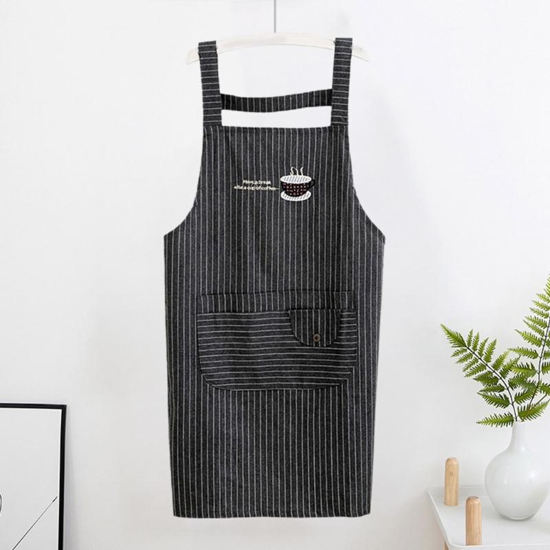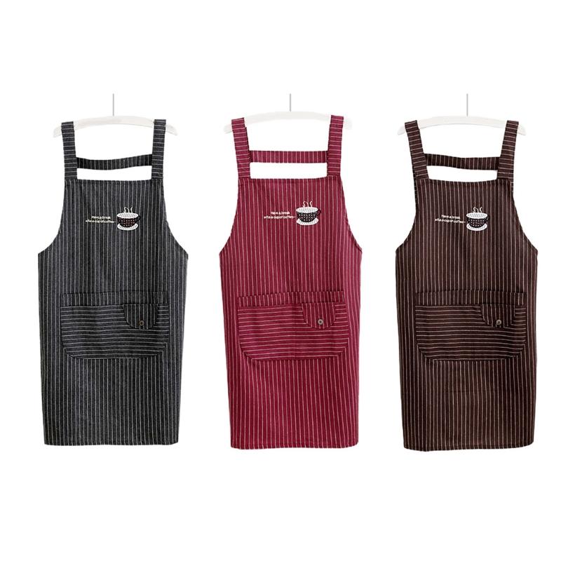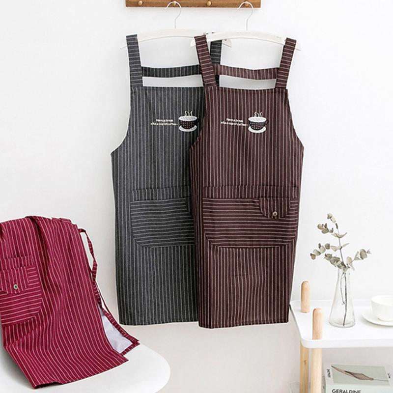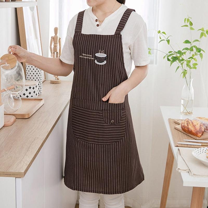 Machine Washable Kitchen Stripe Apron with Pockets For Women Cooking and Baking BBQ Cafe