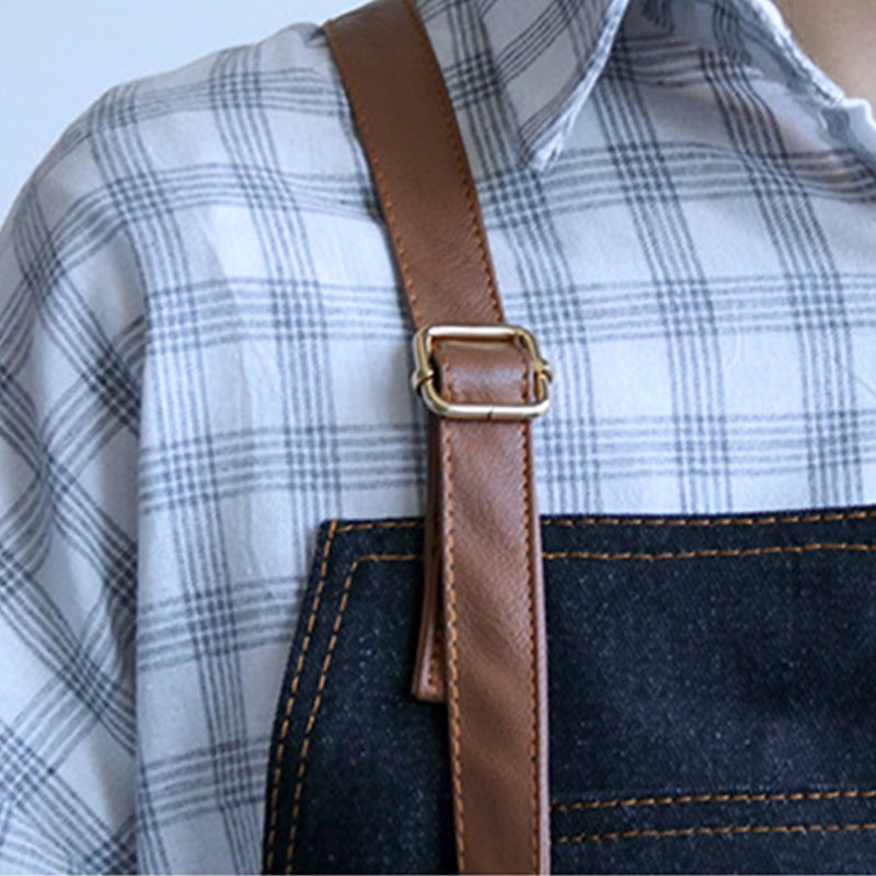 Denim Apron With Pocket Cross Back Adjustable Hanging Buckle