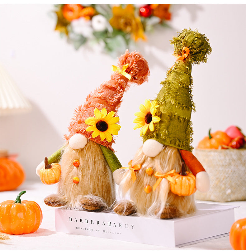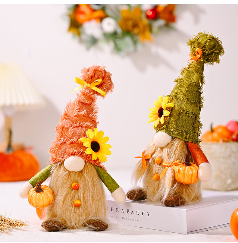 This set of adorable gnomes will add a fun touch to your fall harvest Festival decor.
