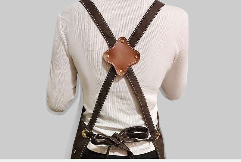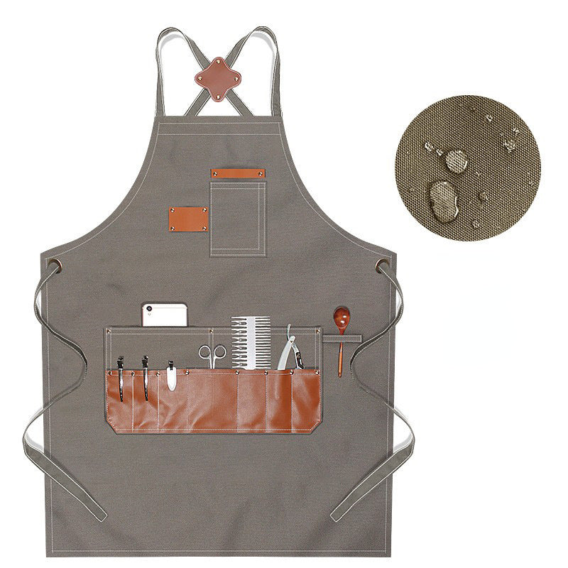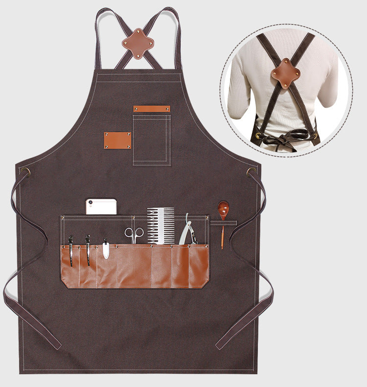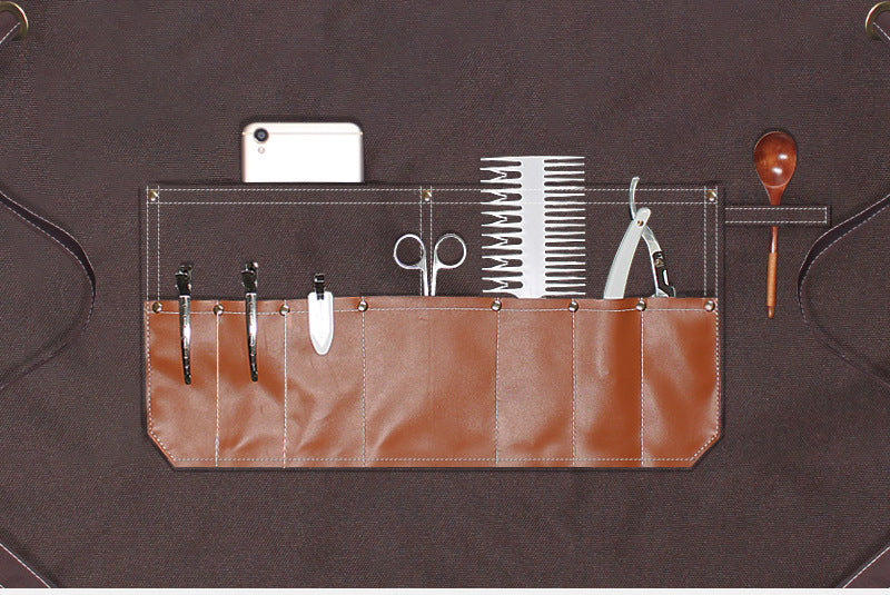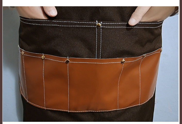 Canvas Waterproof Apron with Leather Pocket For Barber/Painting /Baking /Working