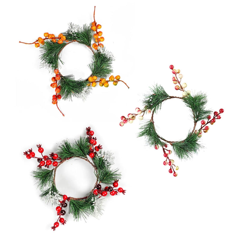 The inside of the wreath is wrapped with iron wire to support and fix it. It can be bent and shaped to design your own Christmas candle holder.