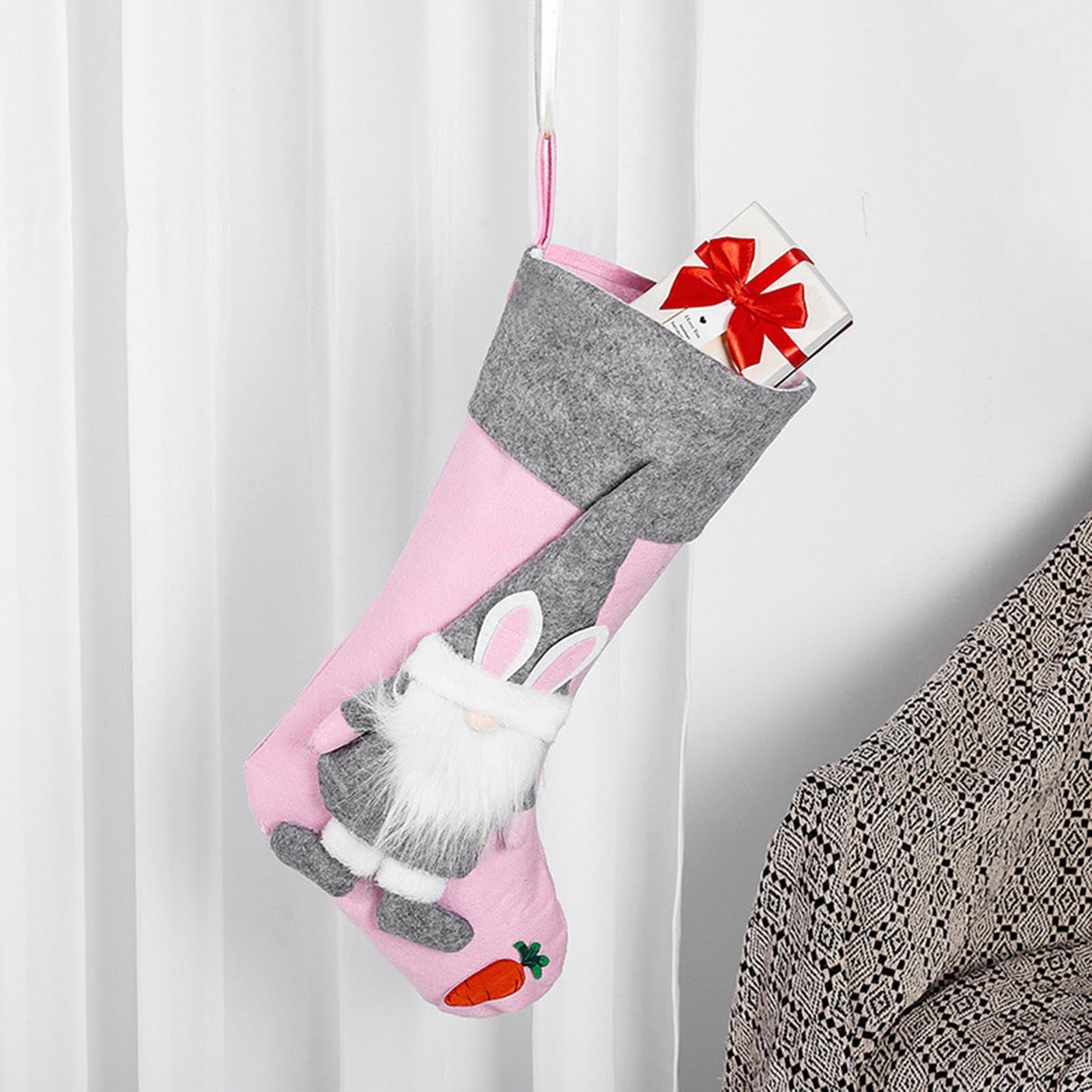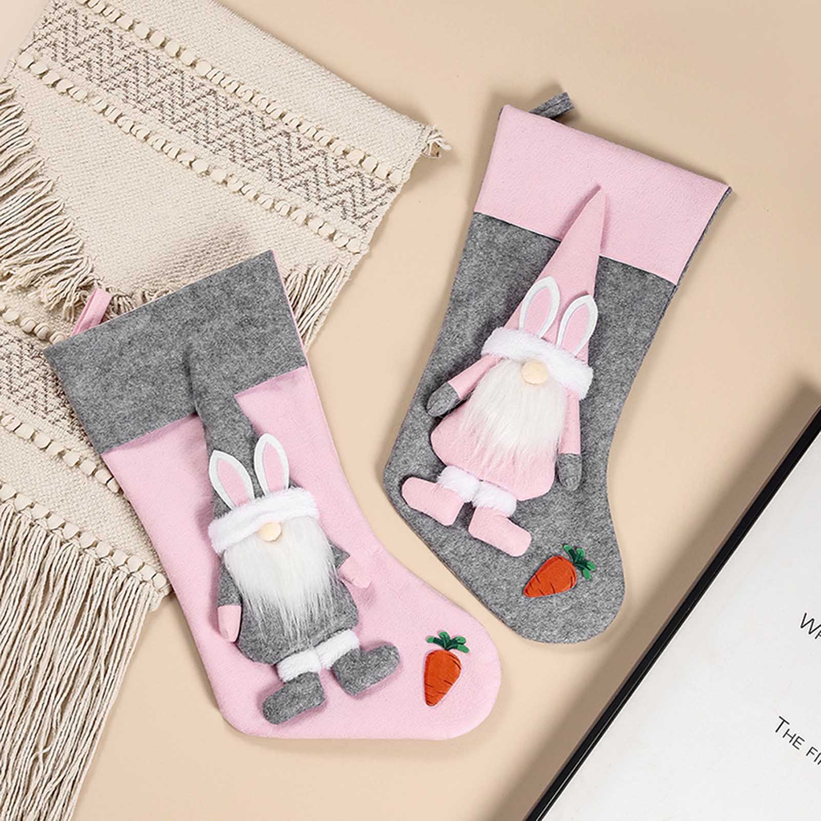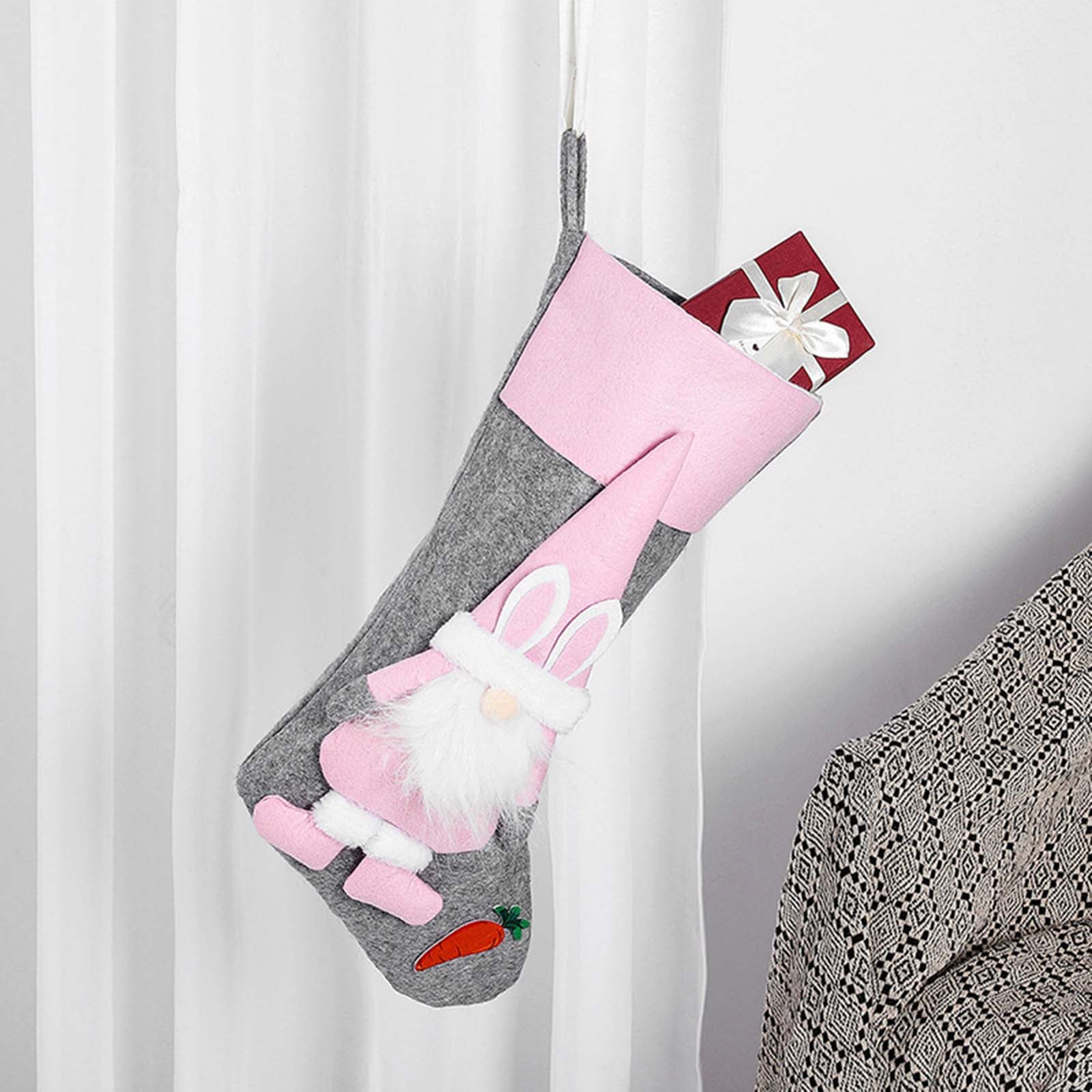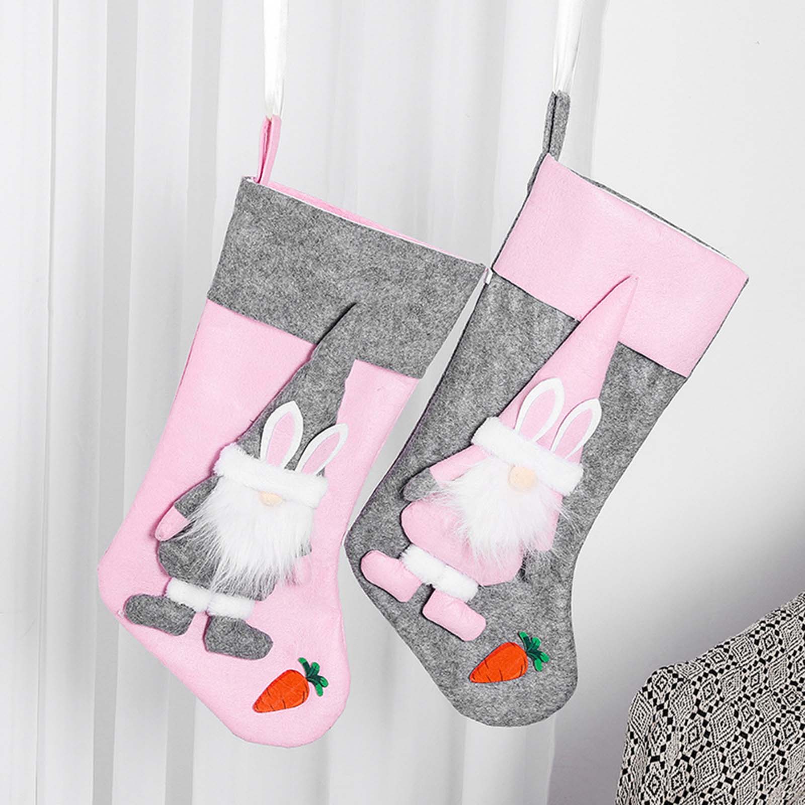 🎁Lovely Gnome Design: Our Christmas stocking is designed with two 3D plush Bunny Gnomes, Gnome Boy and Gnome Girl, as accessories. They will bring us good luck, happiness, warmth and also add little magical to our home.