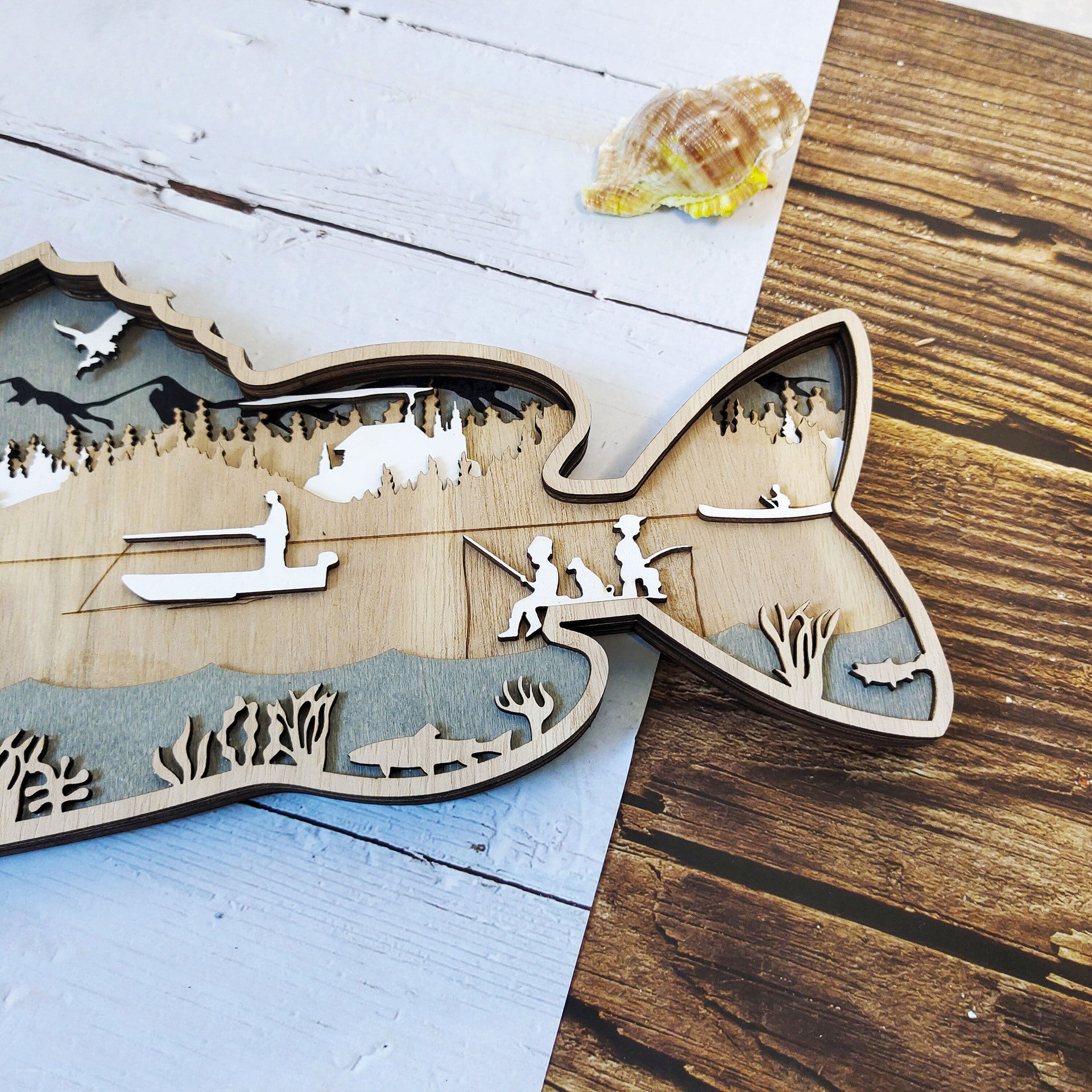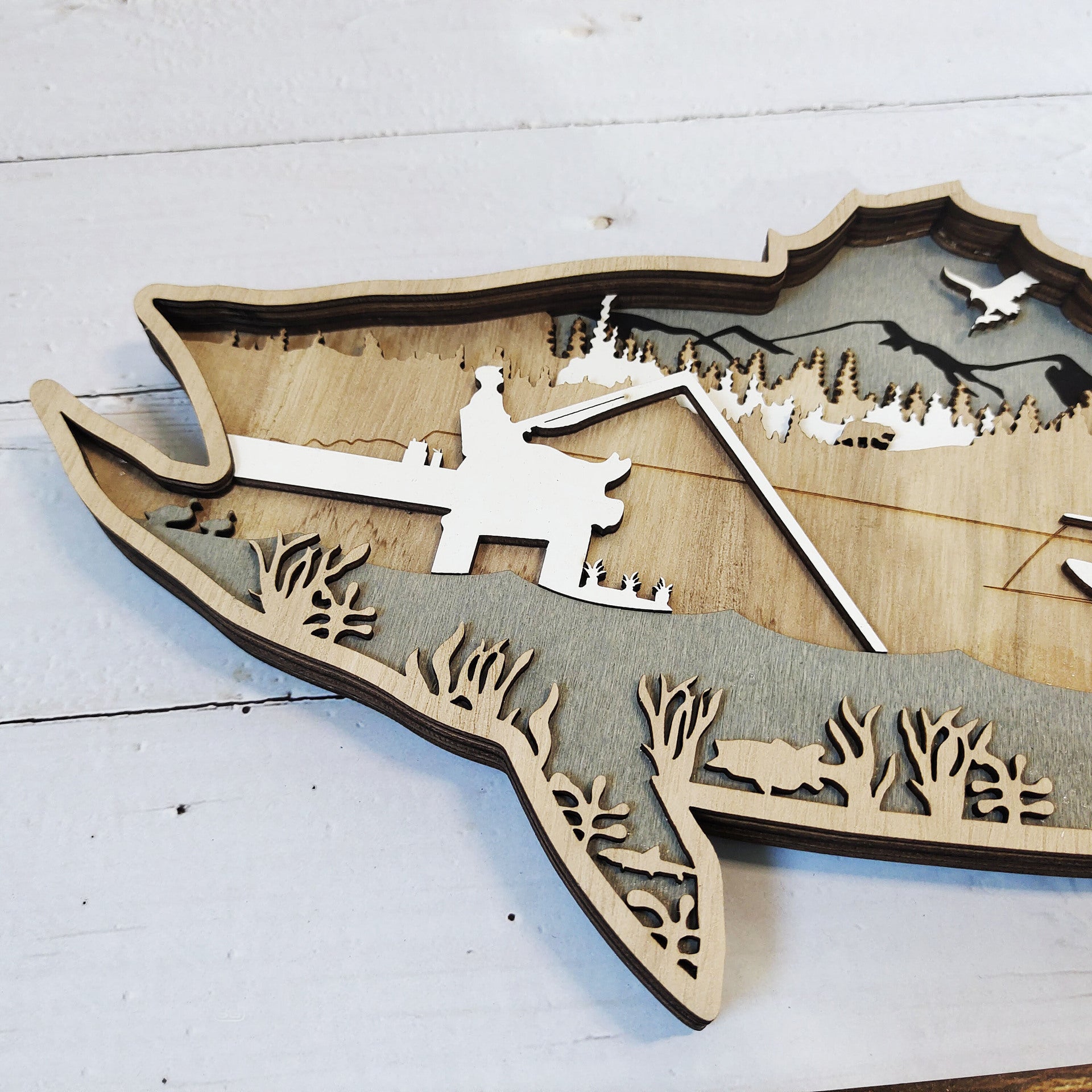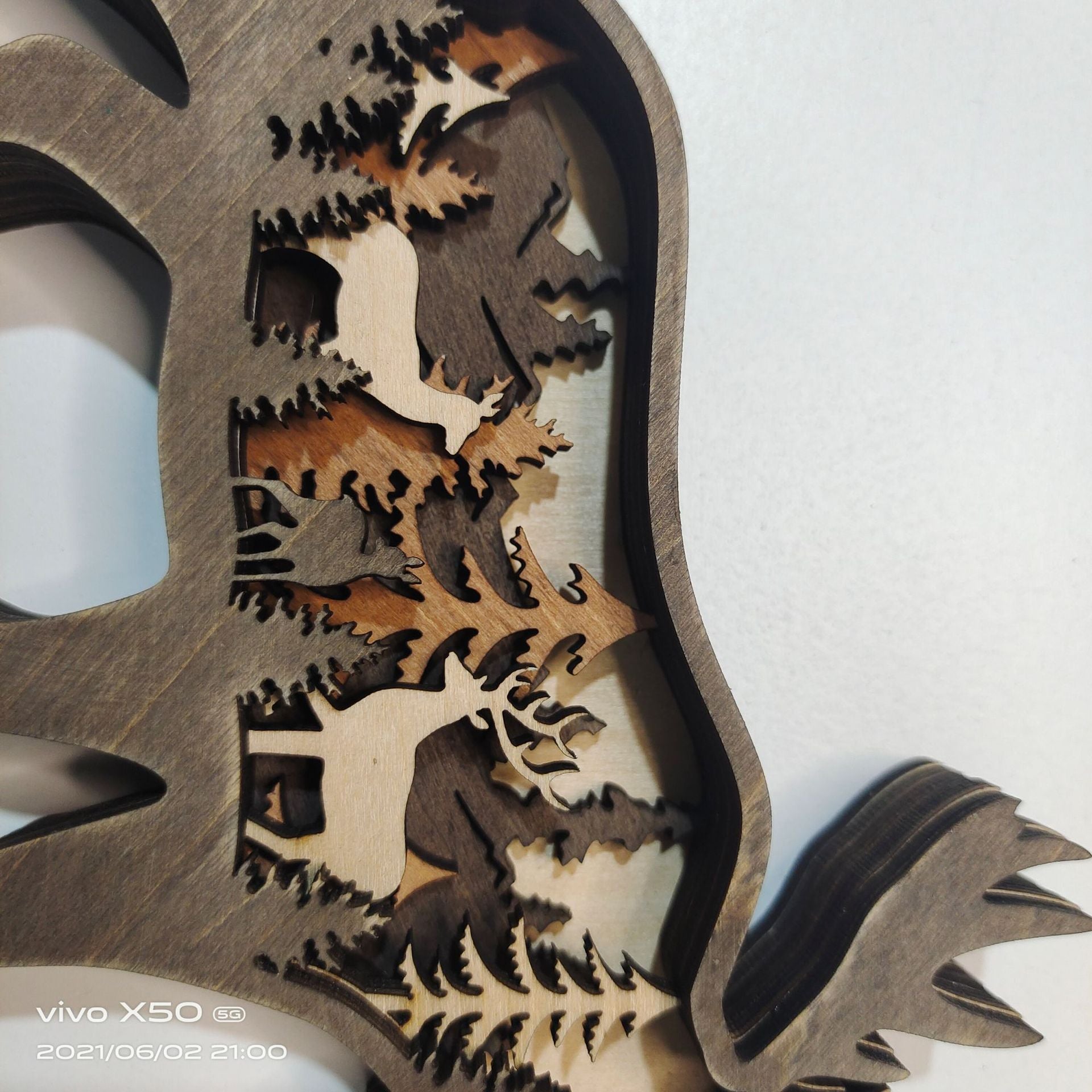 🦌It is made of high-quality wood and carved with exquisite details, safe and burr-free. 4 style you can choose: Wooden bass, wooden salmon, wooden elk and wooden bear.