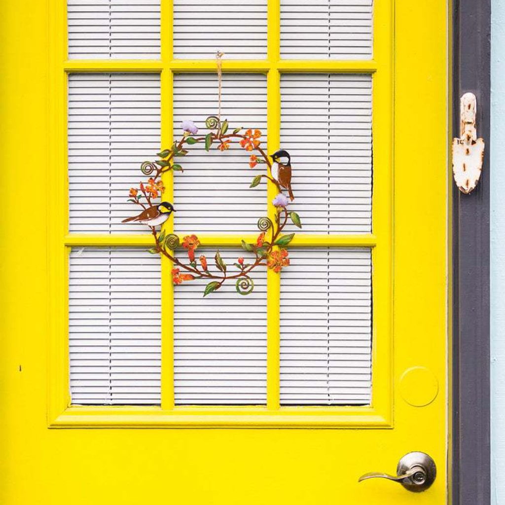 Chickadees & Flowers Wreath is artificially confused, simple.