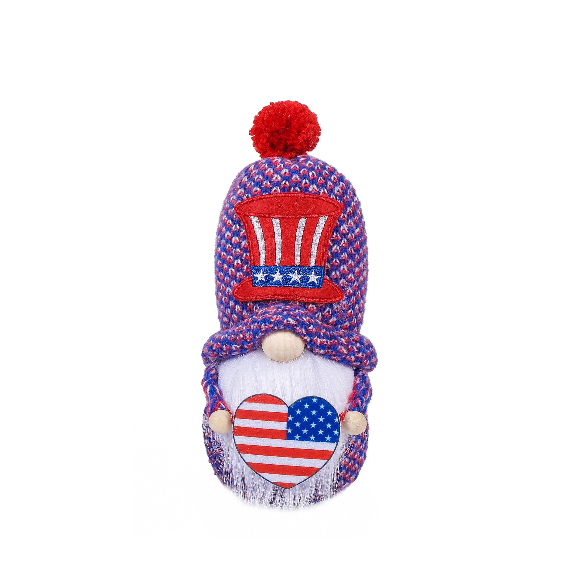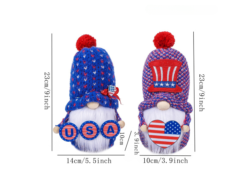 July 4th knitted hat gnomes holding USA