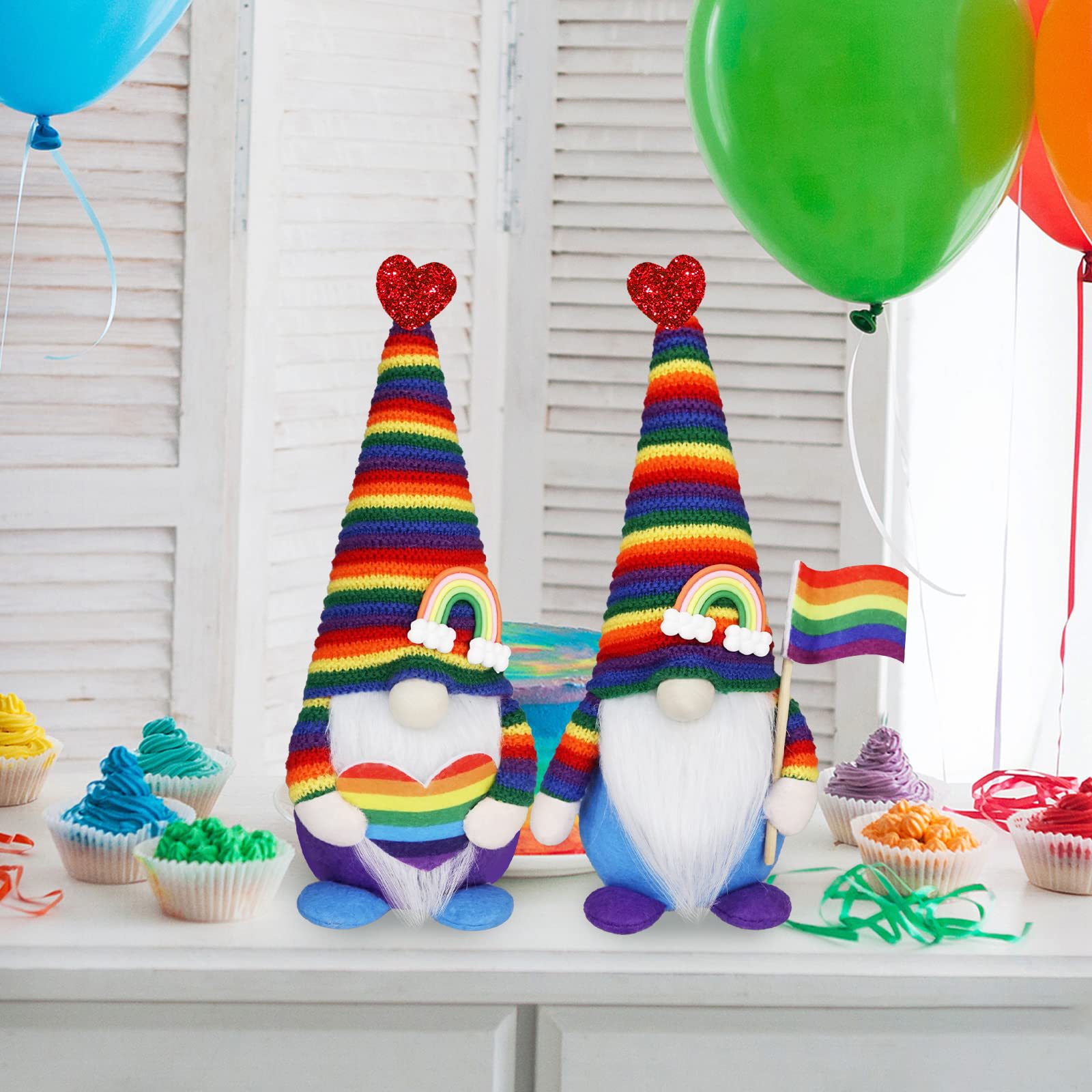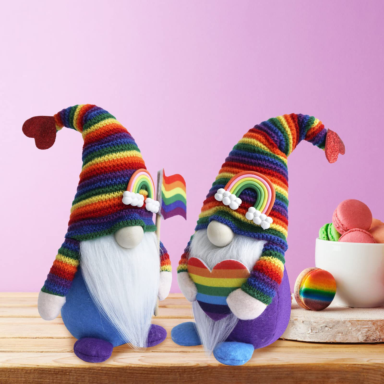 Knitted hat rainbow gnomes