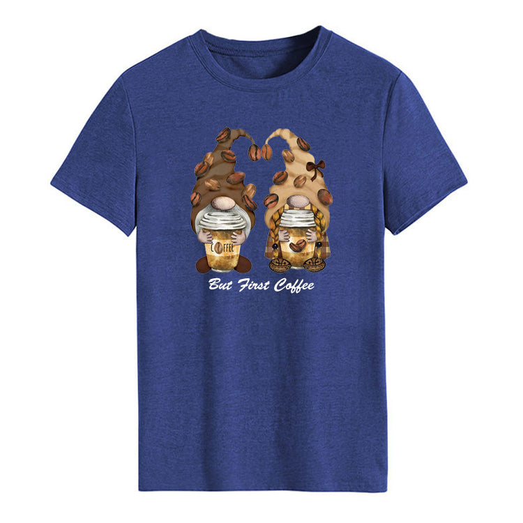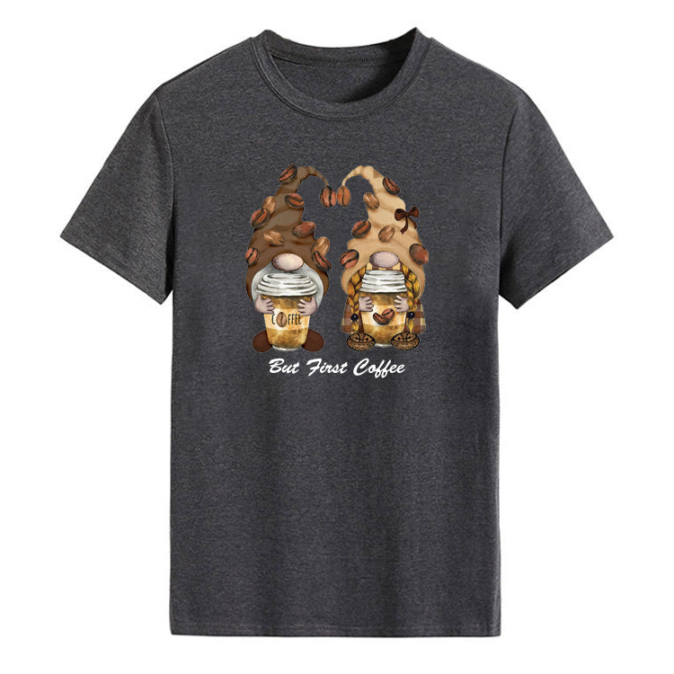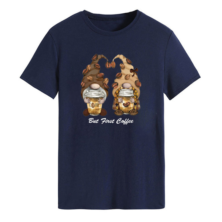 Personalized Custom Coffee Gnome Couple Spring Summer Unisex T-shirt