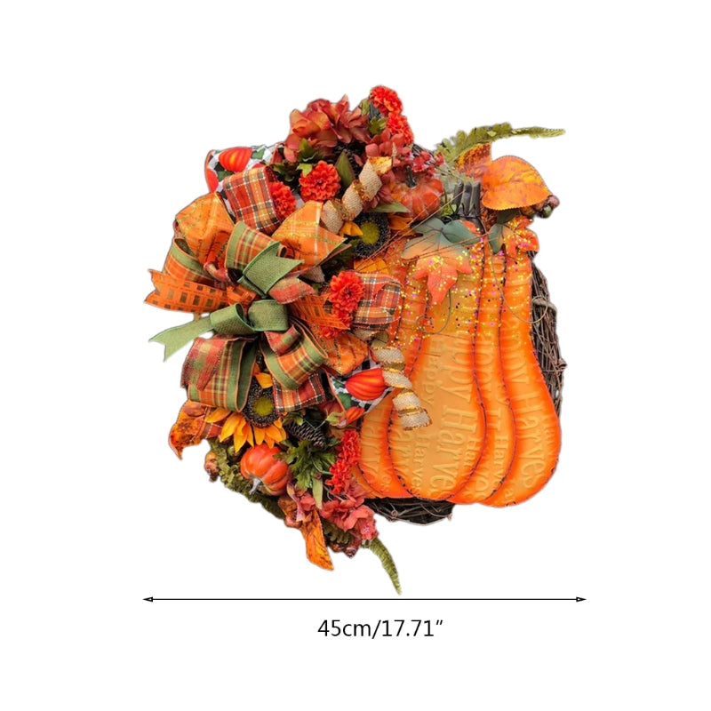 Enjoy this beautiful, deluxe wreath for years to come! Greet your guests with this stunning autumn pumpkin wreath.