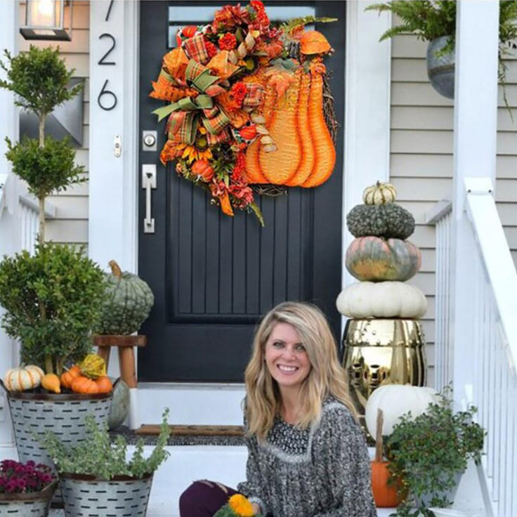 The oversized pumpkin is the most classic front door decoration this fall! Pumpkin brings such a fun and enjoyable feeling to autumn!