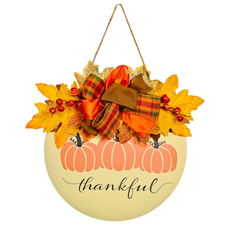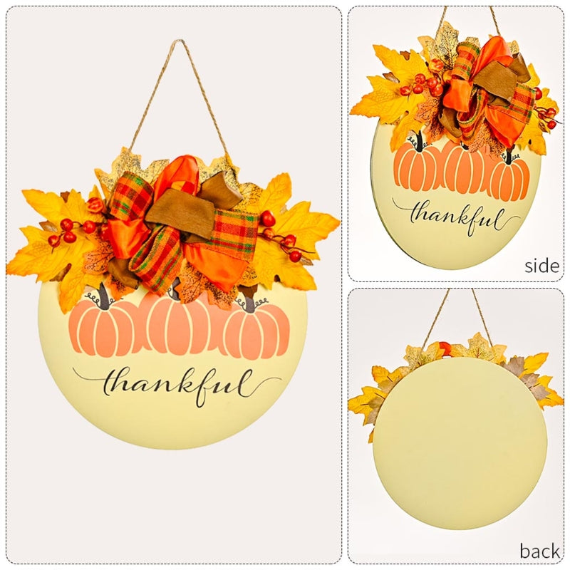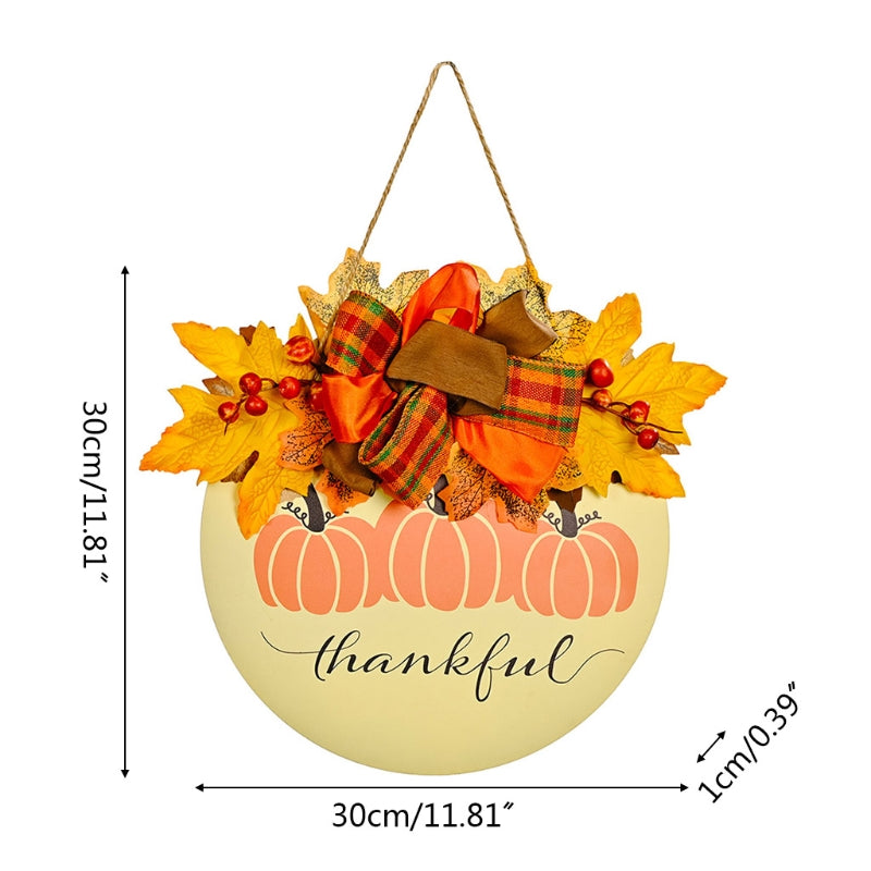Wooden Pumpkin Doorplate Thanksgiving Day Harvest Festival Wreath Sign