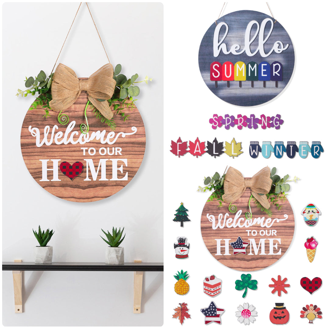 🍄HIGH-QUALITY MATERIAL- The interchangeable season welcome sign decor is made of pine wood material. They can be reused for a long time, without scratches and paint peeling off.
